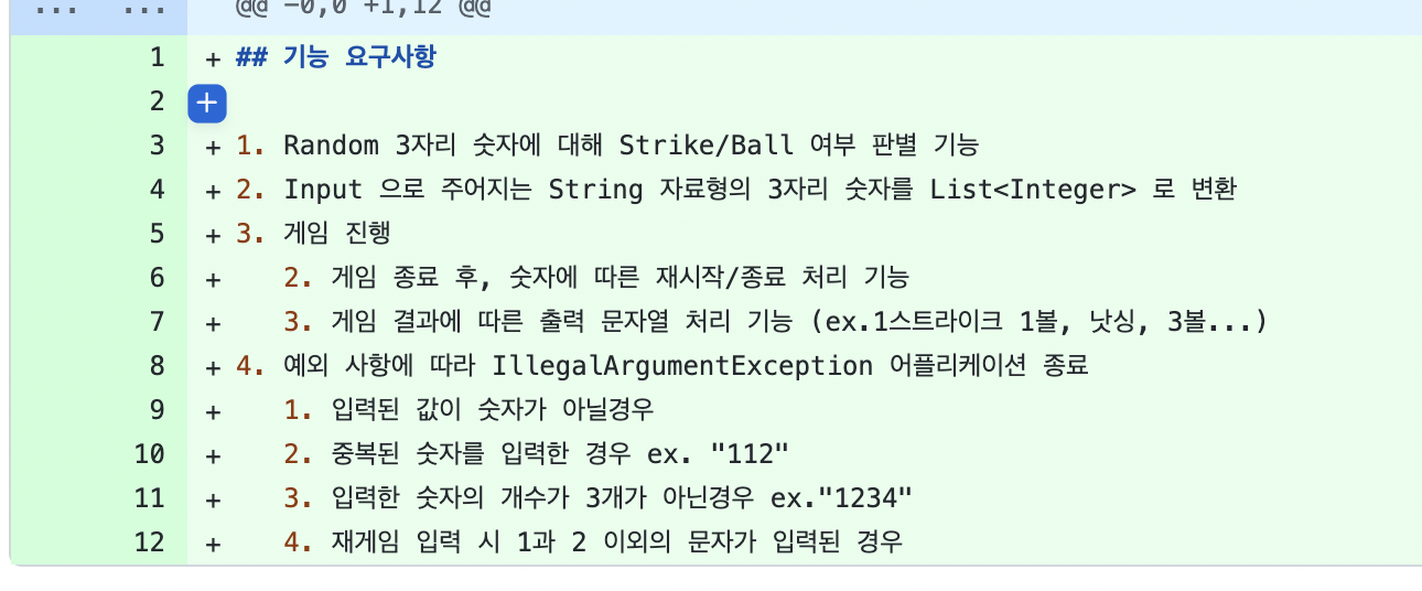 하지만 코드 리뷰를 통해 여러 사람 코드를 보면서 사람들이 기능 요구사항을 굉장히 세세하게 짠다는 것을 알았고 이번 주차에는 나도 세밀한 기능 요구사항을 작성 해야겠다고 생각했다.