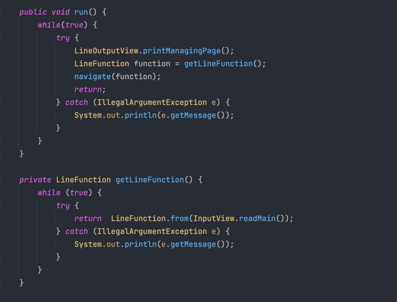 while { try ~ catch } 가 발견되었다.